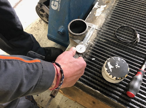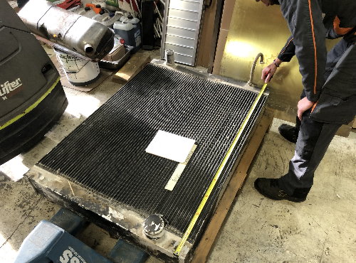 À partir du modèle usine du radiateur, l’équipe de Proradia a fabriqué de nouveaux radiateurs. Avant toute refabrication, la prise des côtes est une étape cruciale, puisqu’elle détermine avec précision les dimensions des futurs radiateurs, l’emplacement des appendices de circulation d’eau et d’huile et le positionnement exact des points de fixation dans le moteur.