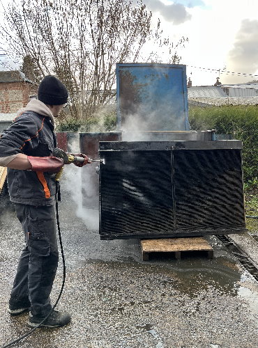 Après toutes ses années passées sur le port et de la taille des radiateurs, la phase de nettoyage a pris plus de temps que celle d’un radiateur de moto ou d’auto : grattage, brossage, nettoyeur haute-pression, jusqu’au pinceau !