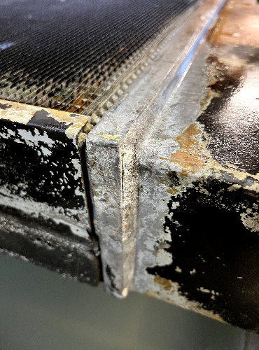 Il s’avère que la plupart des fuites se trouvent à la jonction des boîtes et des faisceaux. Une grande partie des anciennes soudures sont donc reprises, plus quelques autres endroits « stratégiques ». Les lamelles des faisceaux sont vérifiées et redressées. Ainsi les radiateurs retrouvent leur capacité maximale de refroidissement par le flux d’air.