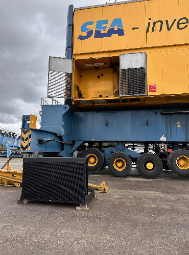Afin de ne pas entraver trop longtemps la disponibilité de la grue, l’équipe de Proradia a effectué cette réparation dans un temps réduit. Sur les photos du jour de la livraison, on aperçoit l’ensemble de refroidissement avec les radiateurs réparés et rénovés. Il apparait tout petit au regard de la taille de grue, cependant il mesure presque 2 mètres de long et pèse autour de 300 kg.